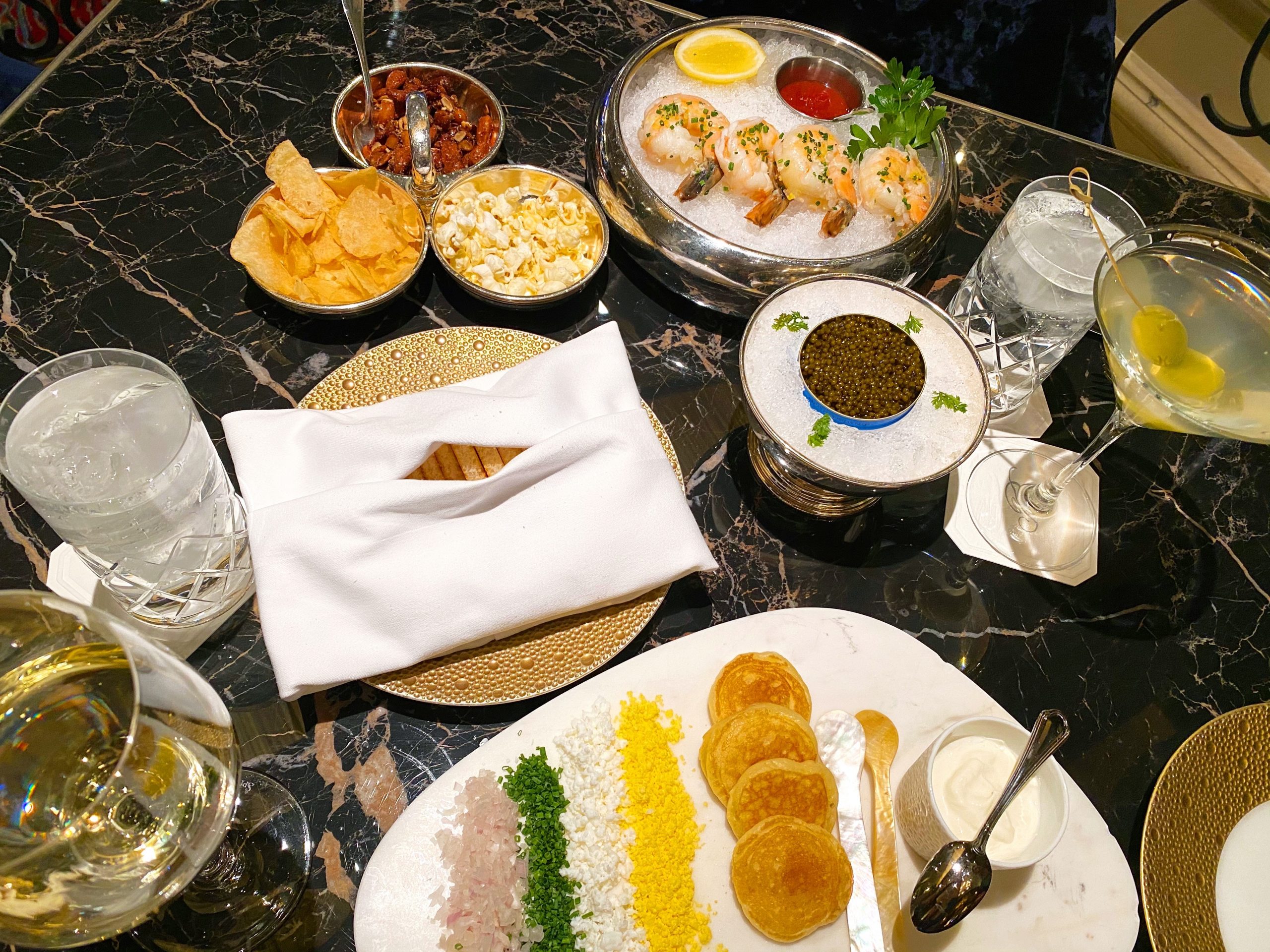 When we got into town, we checked into the room and then went downstairs for caviar. It’s one of our Vegas traditions to get caviar from the piano bar downstairs and it didn’t disappoint. We had amazing shrimp cocktail, drinks, and people-watched.