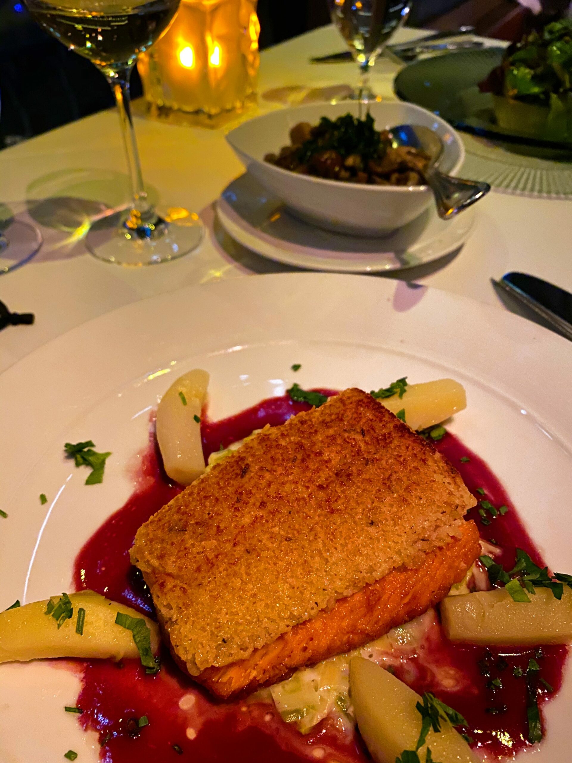 You guys. I didn’t know if the food at Eiffel Tower would be overhyped but it was AMAZING. It might have been the best restaurant salmon I’ve had. It was in a savory pinot noir buerre blanc with leaks and a crispy panko topping. The only thing that was a little meh was the chocolate soufflé dessert. (I mean this one will always be #1 in my heart.)