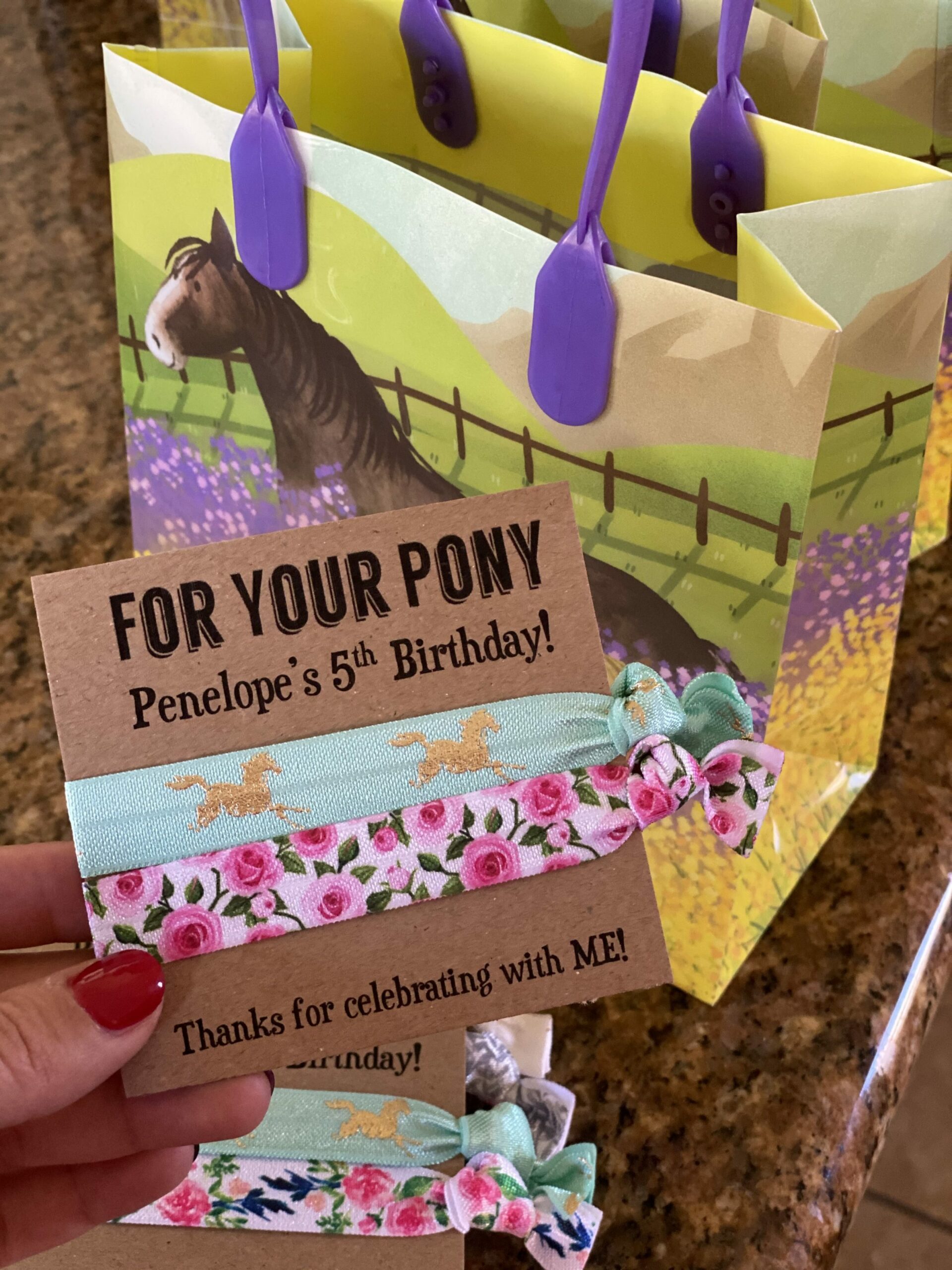 I also ordered little horse bracelets, horse stickers, and then added some treats like Annie’s gummies, lollipops, and mini stampers.