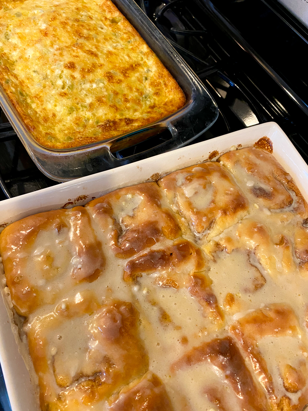 We listened to Christmas music while they opened their gifts, and then mom, nana, my stepdad, Trevor, Uncle E and our cousins were over just in time for breakfast: cinnamon rolls, egg casserole, tamales, picadillo, and ALL the sweet treats. I set out a tray of cookies and peppermint bark, and madre brought over cookies, coffee cake, and grammies (I’ve had a hundred this weekend).