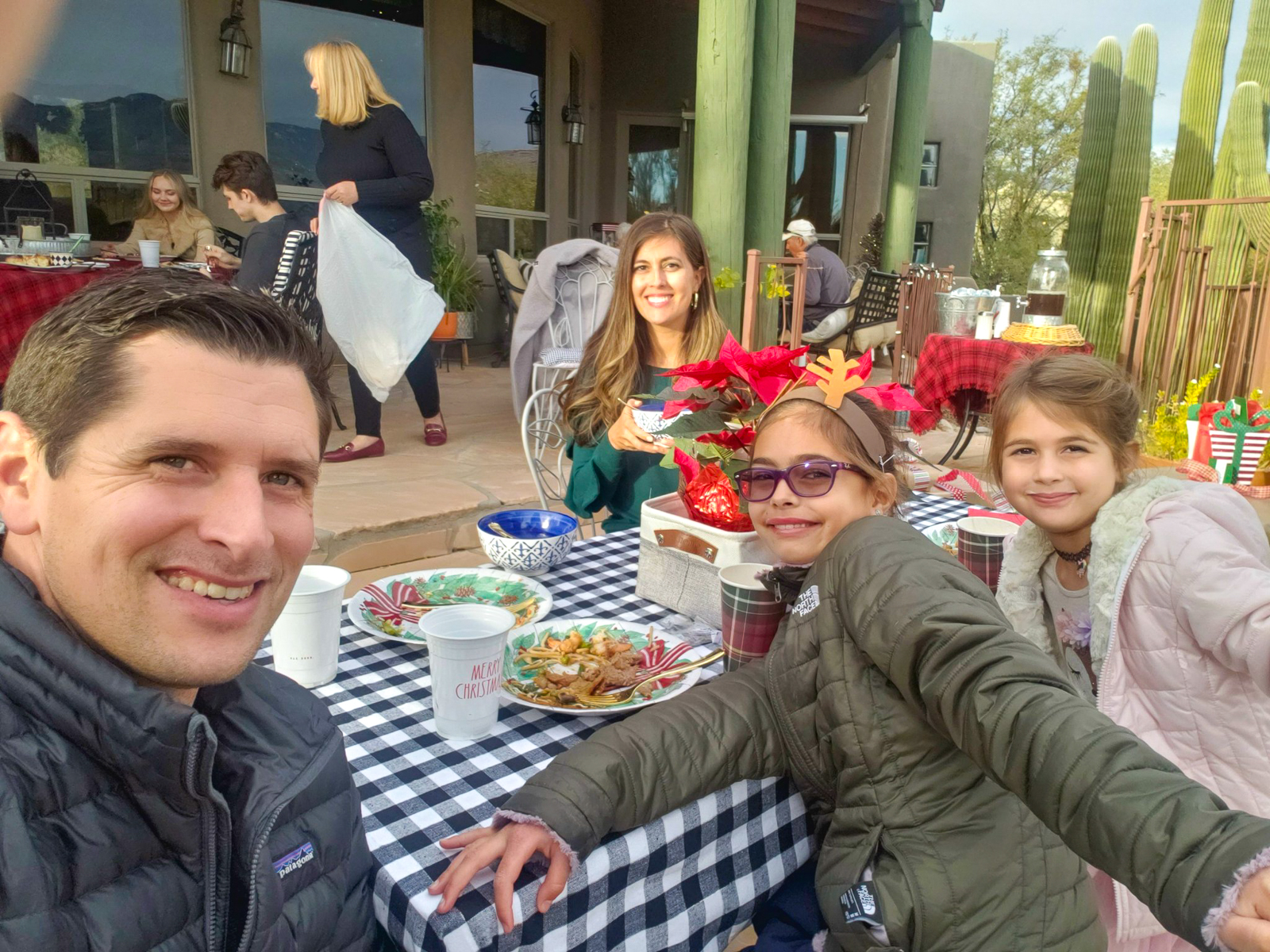 My stepmom set up beautiful outdoor seating areas so we could be spaced out and the kiddos could play on their playground. The weather was perfection!! We ate Chinese takeout, desserts, opened gifts, chatted around the outdoor fireplace, and my dad set up a race track on his putting green so the boys could race remote controlled cars. It was pretty hilarious.
