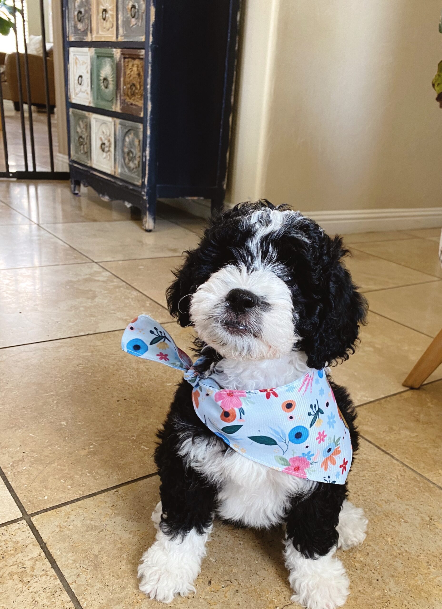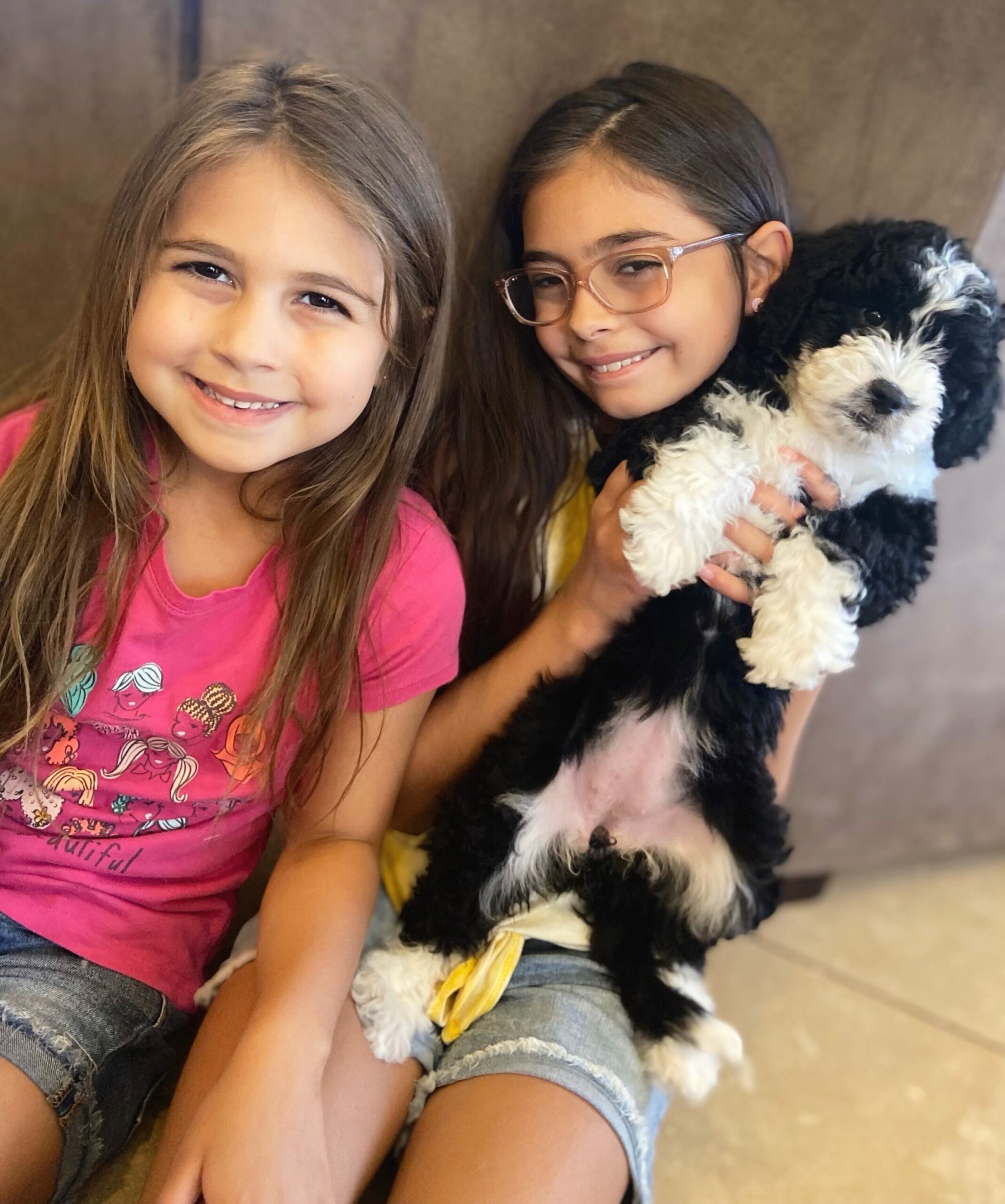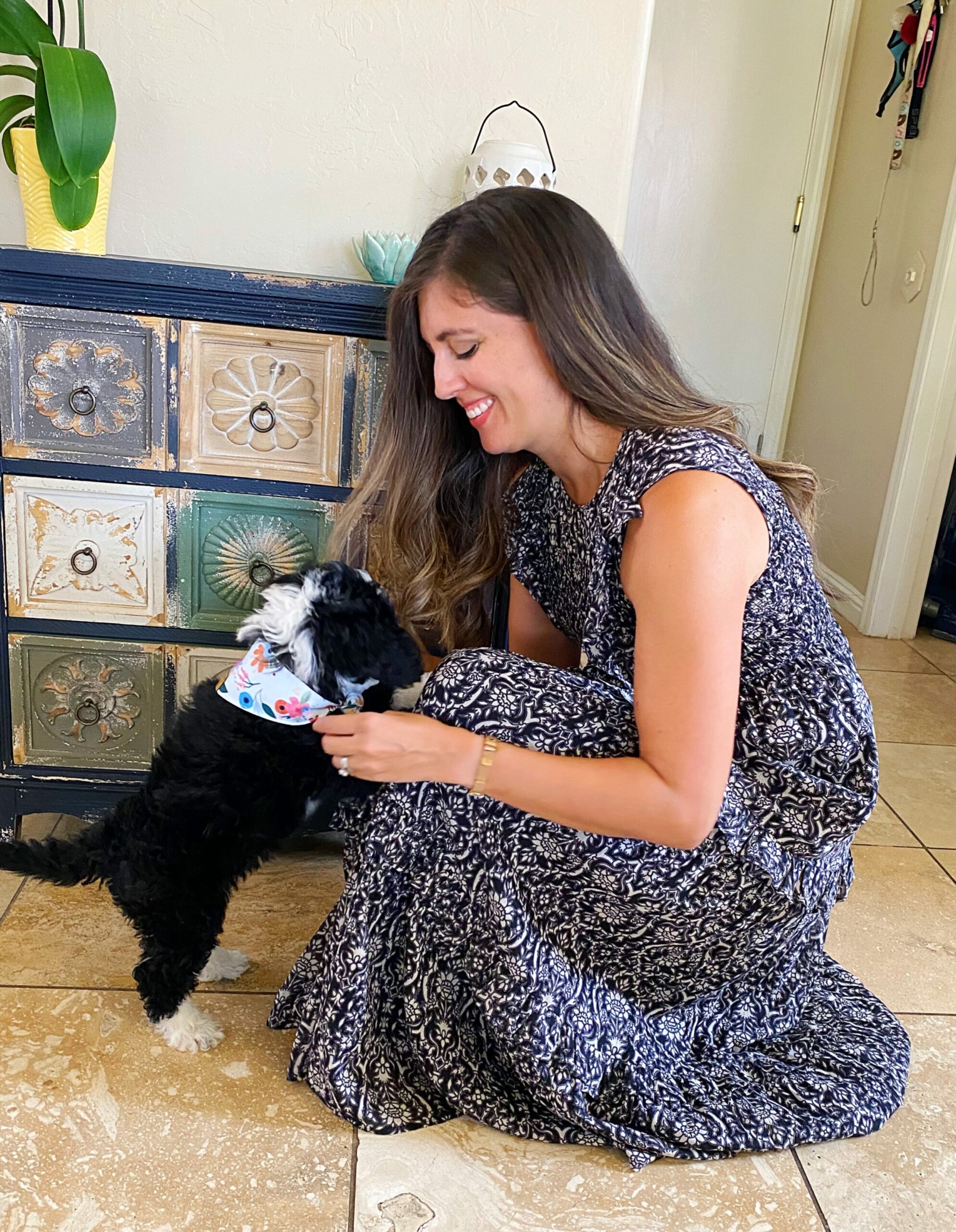 She’s a mini sheepadoodle and the sweetest, snuggliest, sassiest little goose. Maisey has already made Caro her best friend (Caro is still trying to figure out what the heck is going on) and loves chasing toys, eating, and taking cat naps on the tile at our feet.